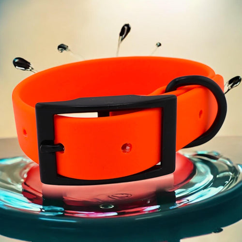 • Vivid Orange Waterproof BioThaneĀ® Dog Collar 1" Durable, Odor-Proof, Easy Clean, Outdoor Pet Gear