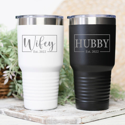 Wifey Hubby Established Tumbler, Personalized Laser Etched Tumbler, Insulated Tumbler 30 oz Ringneck Tumbler, Bridesmaid Tumbler Gift