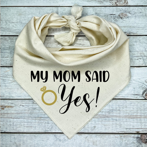 My Mom said Yes with Gold Ring! Dog Bandana, Engagement Gifts For Dog Lovers