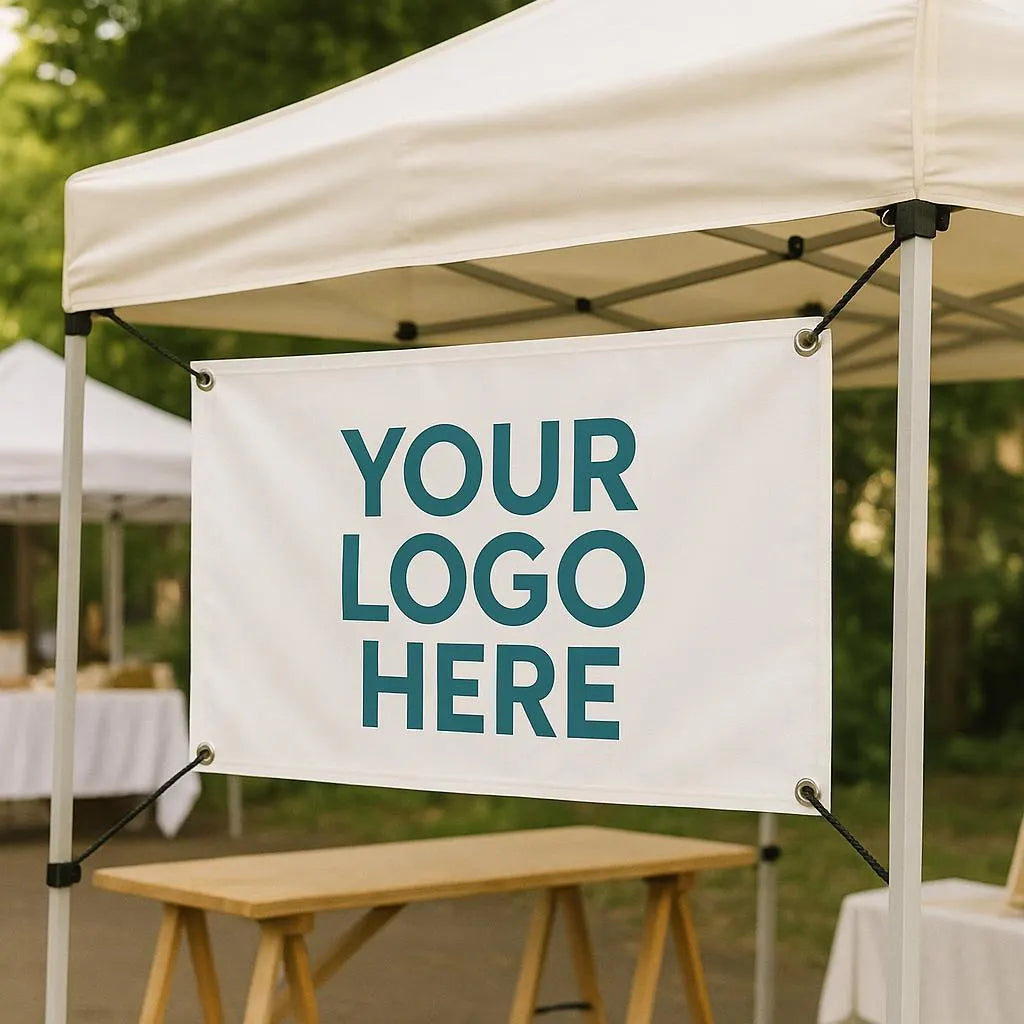 Show off your brand with a custom printed logo banner — perfect for business booths, markets, trade shows, and events! Simply upload your logo, and we’ll print it in vivid color on durable outdoor vinyl.