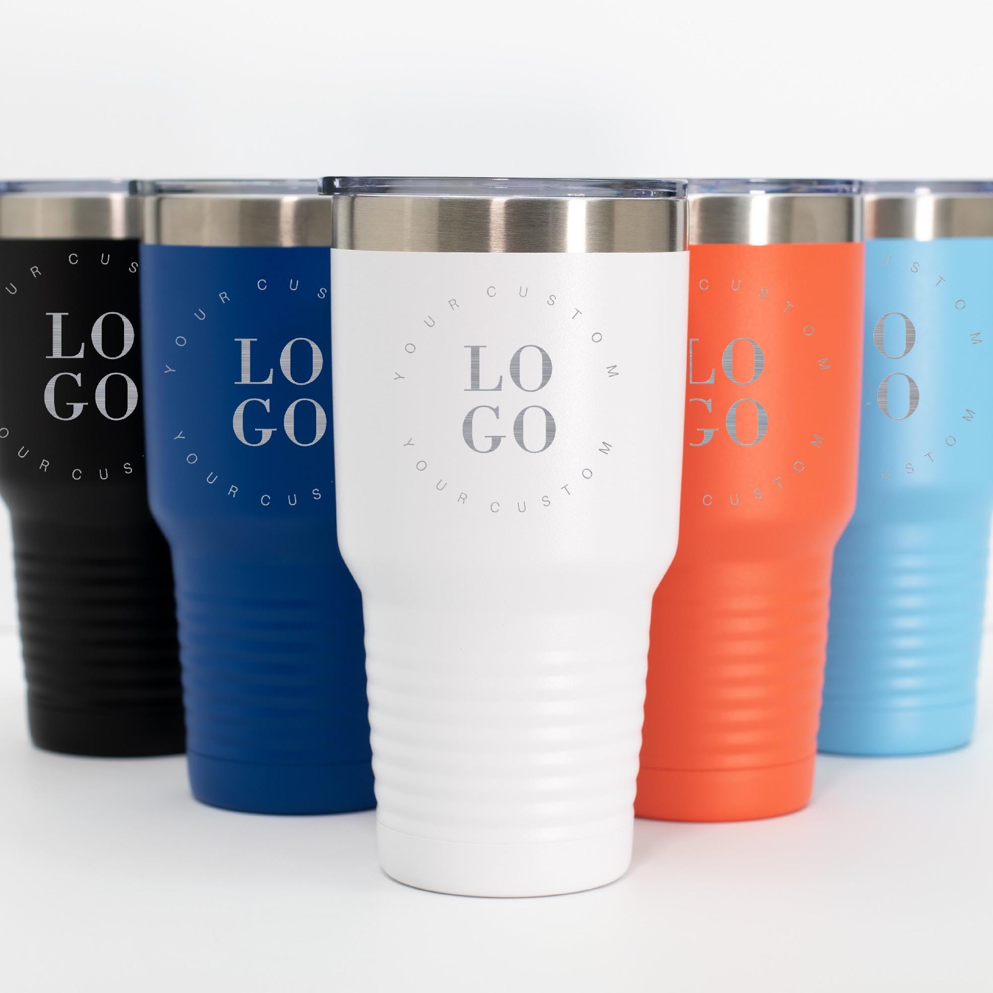 Our tumblers are high-quality, double-wall insulated stainless steel, keeping beverages hot or cold for hours. Your logo or custom design is laser engraved directly onto the tumbler for a crisp, permanent finish – no stickers or vinyl.