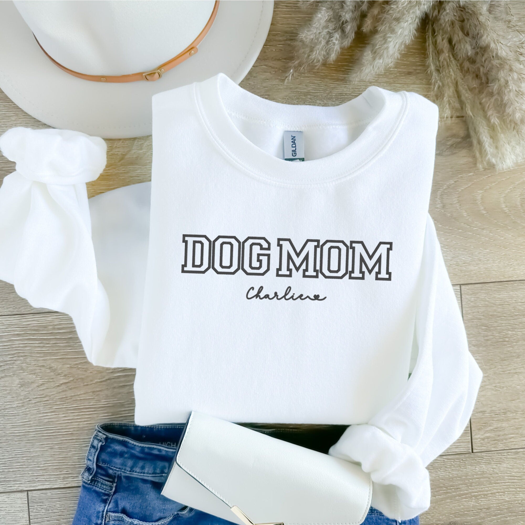 Get this cozy sweatshirt for your favorite dog mom this Christmas. The material is as soft as it is durable and the embroidered lettering is top notch. We offer free shipping on this item.