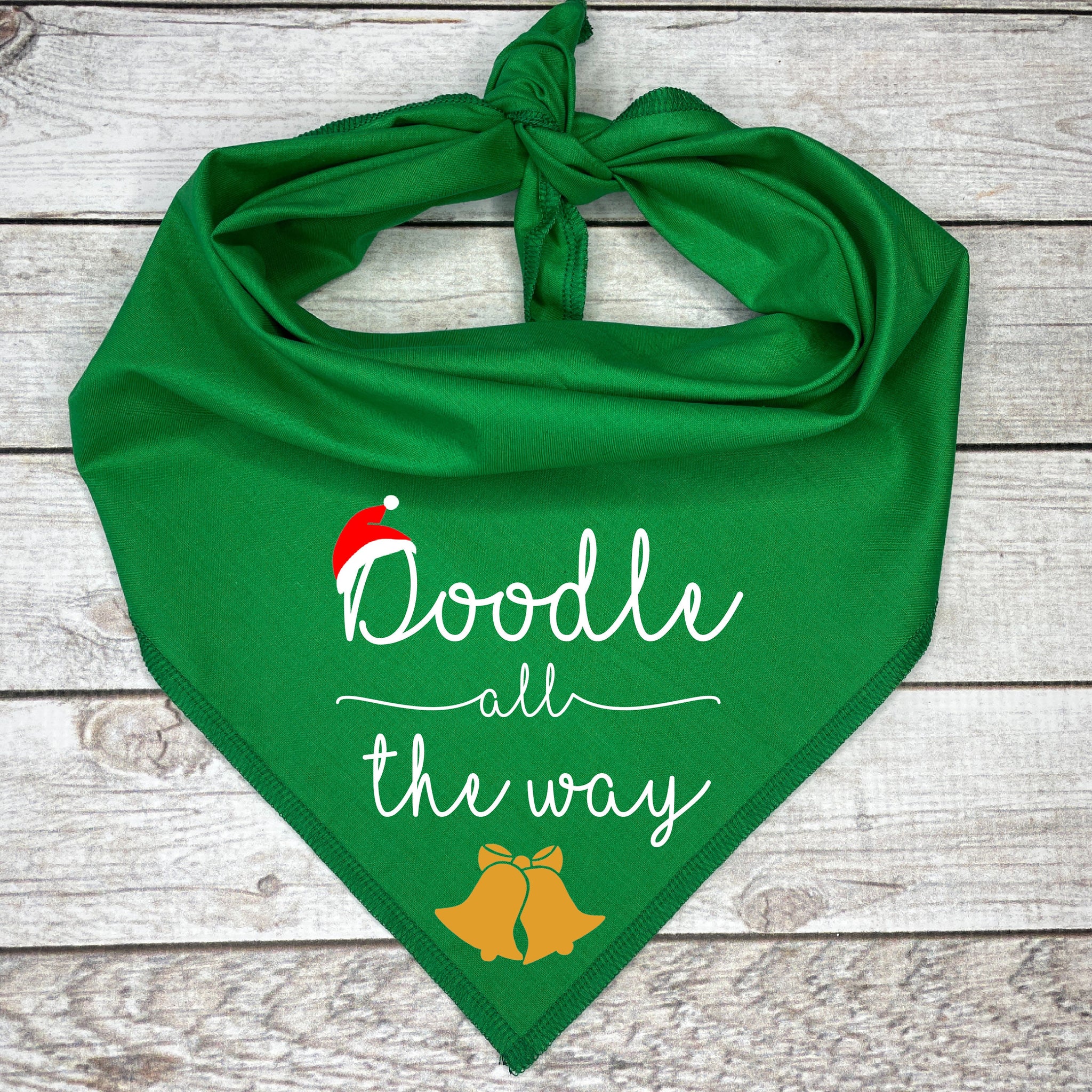 A great Christmas gift for the doodle in your life can be on its way as soon as today. Attention doodle moms and doodle dads looking for the perfect dog bandana for your 2023 Christmas cards. Here it is.