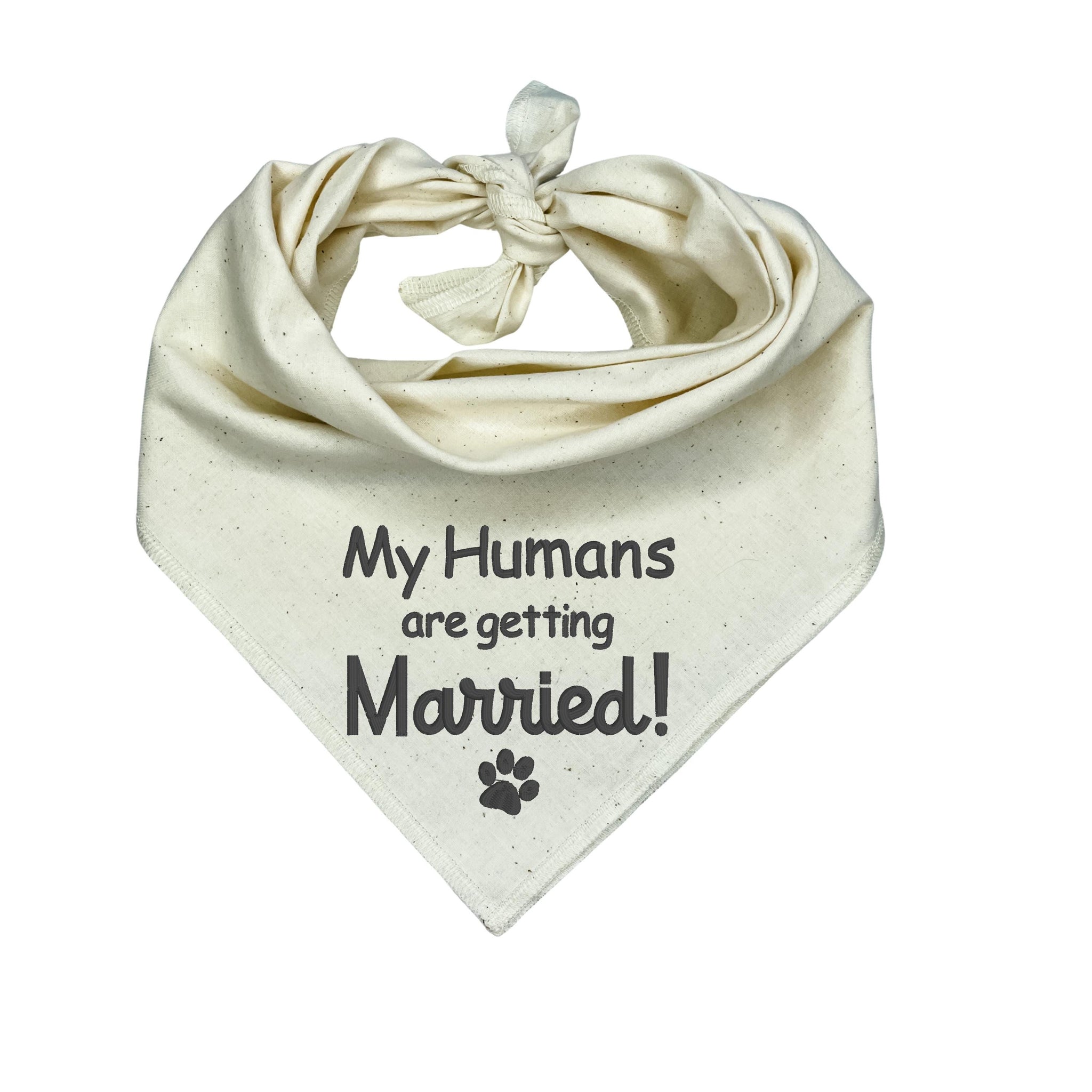 This adorable embroidered dog bandana features the sweet phrase "My Humans Are Getting Married!" – perfect for engagement announcements, save-the-date photos, weddings, and bridal showers. 🐾💍