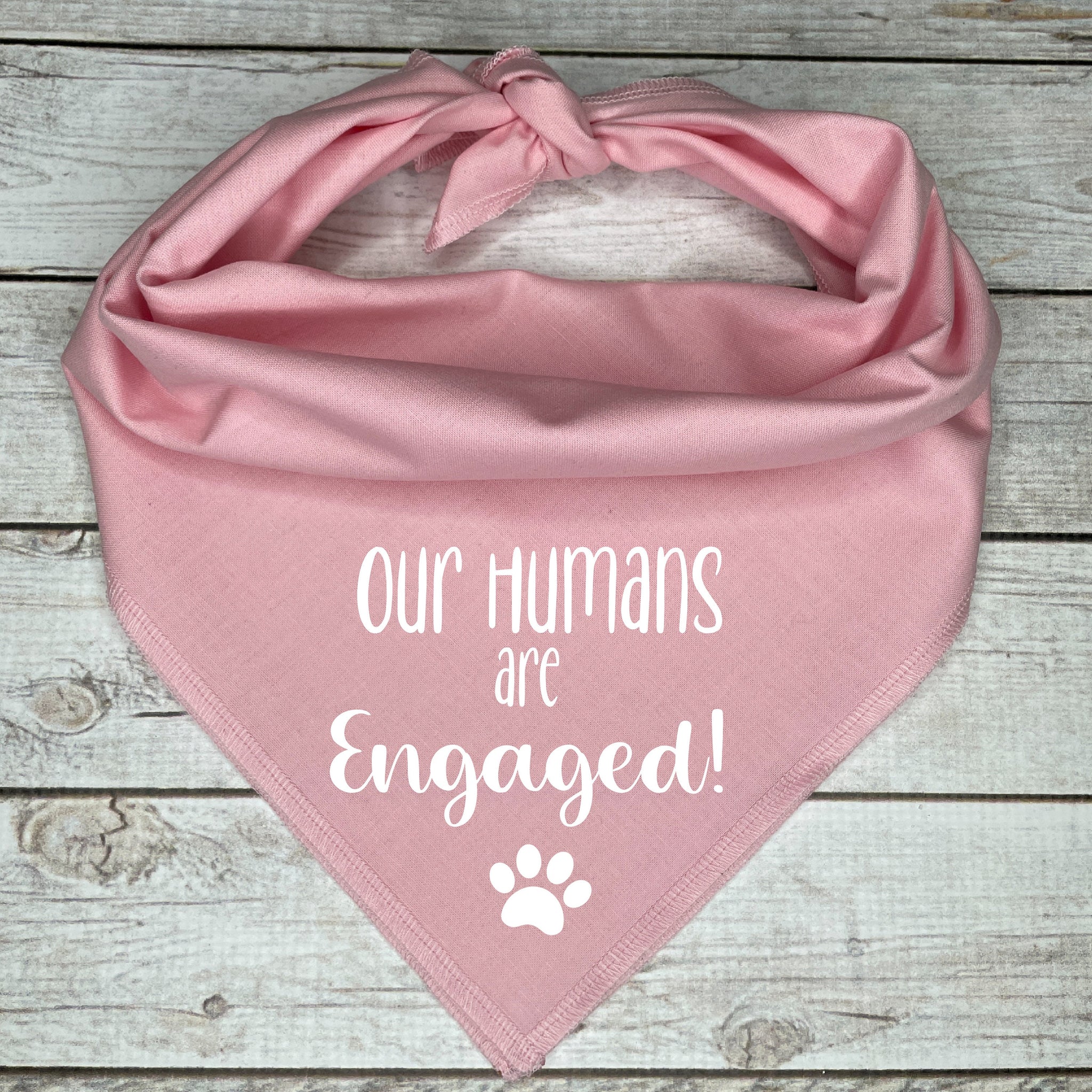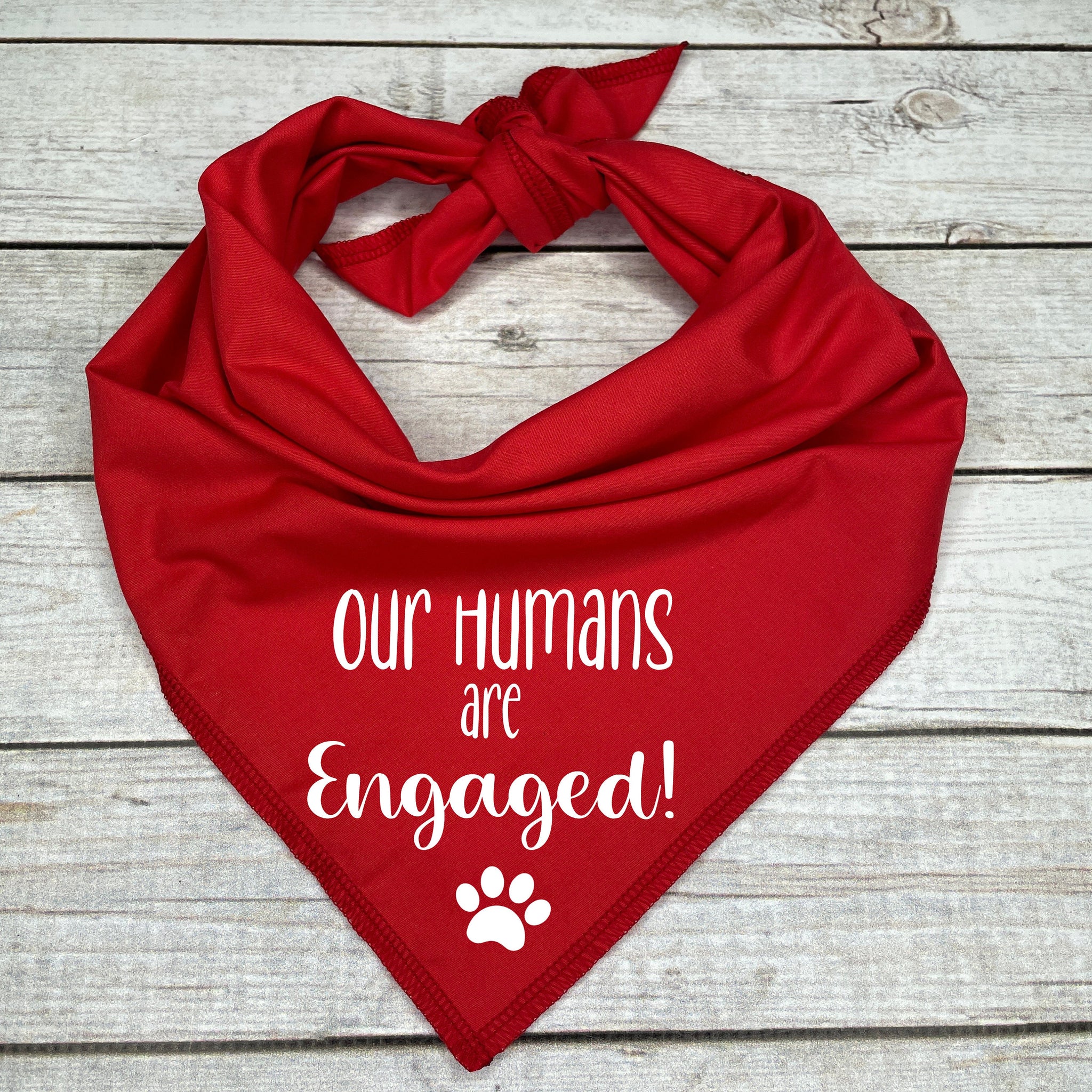 This dog bandana is the perfect engagement gift for soon to be married couples to use in there wedding photos and marriage announcements.