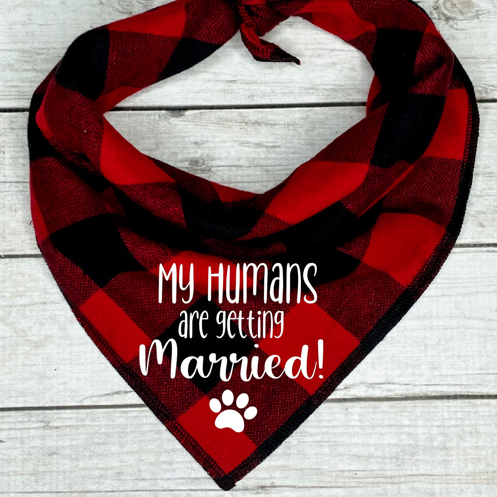 Order your "My Humans are Getting Married" dog bandana today, and treat your furry friend to an experience they will cherish alongside you and your loved ones on your wedding day.