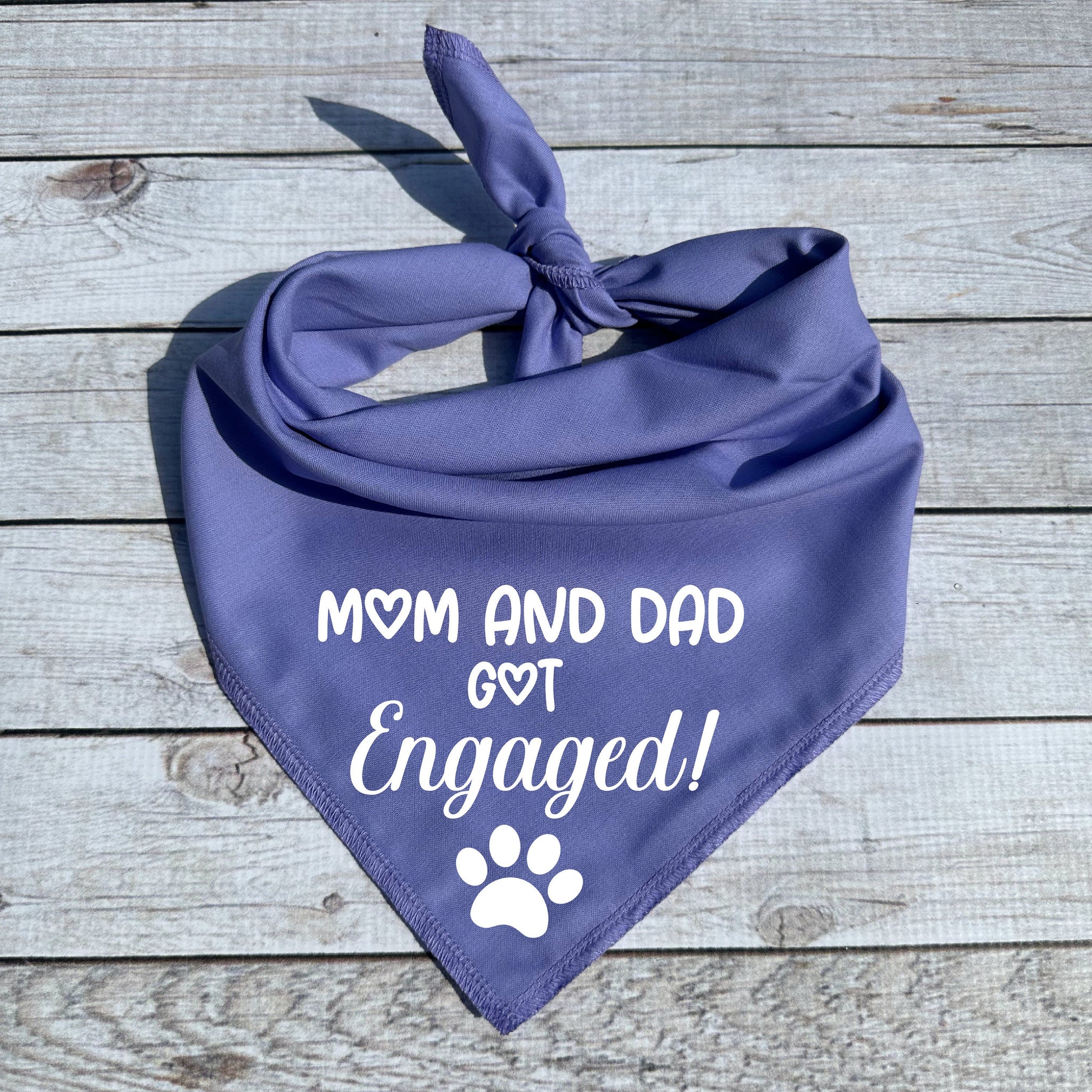 What a cute way to announce your engagement to your friends and family. Your fur baby will be the star of your engagement party. This quality dog bandana makes a great engagement gift for couples. Multiple colors available to coordinate with party decorations.