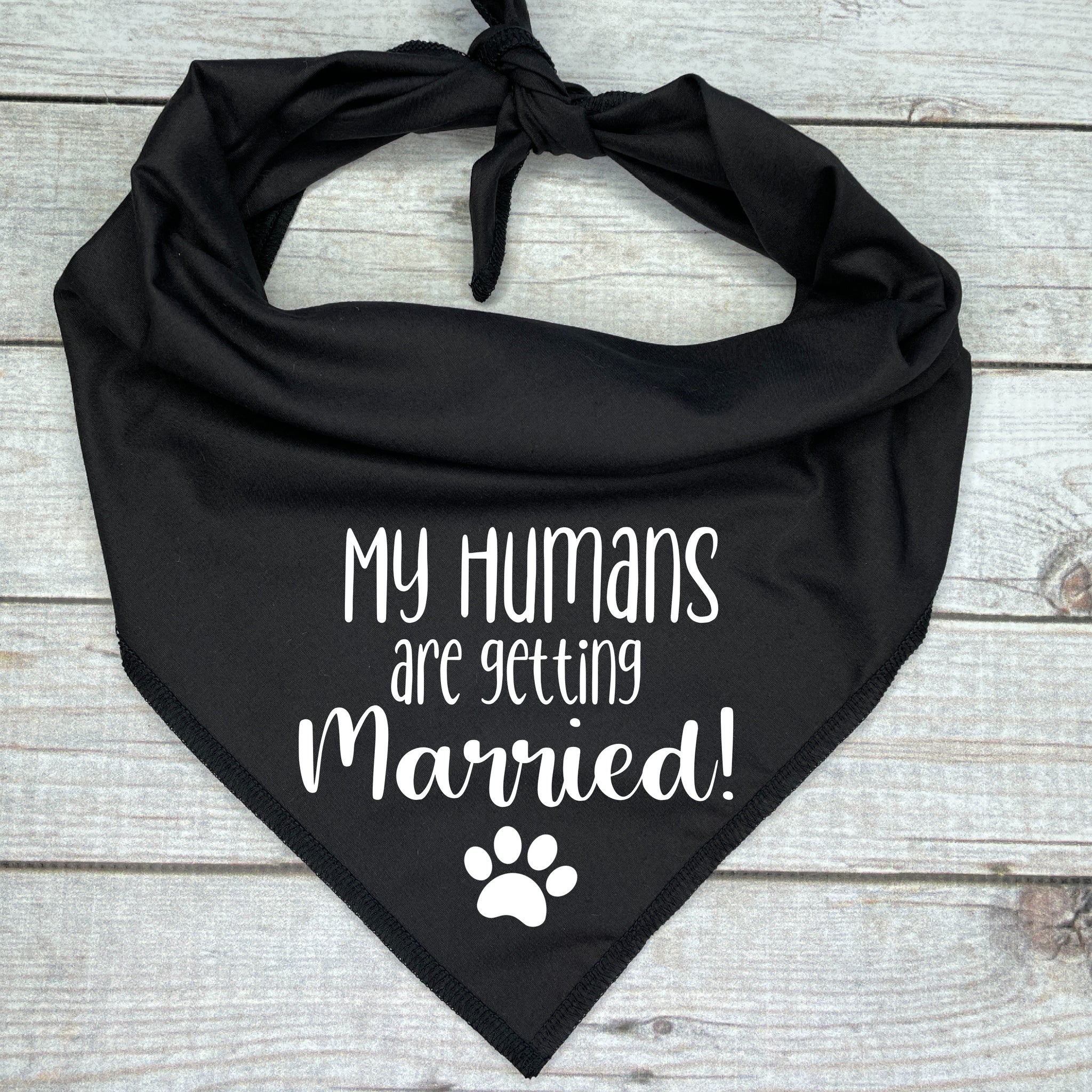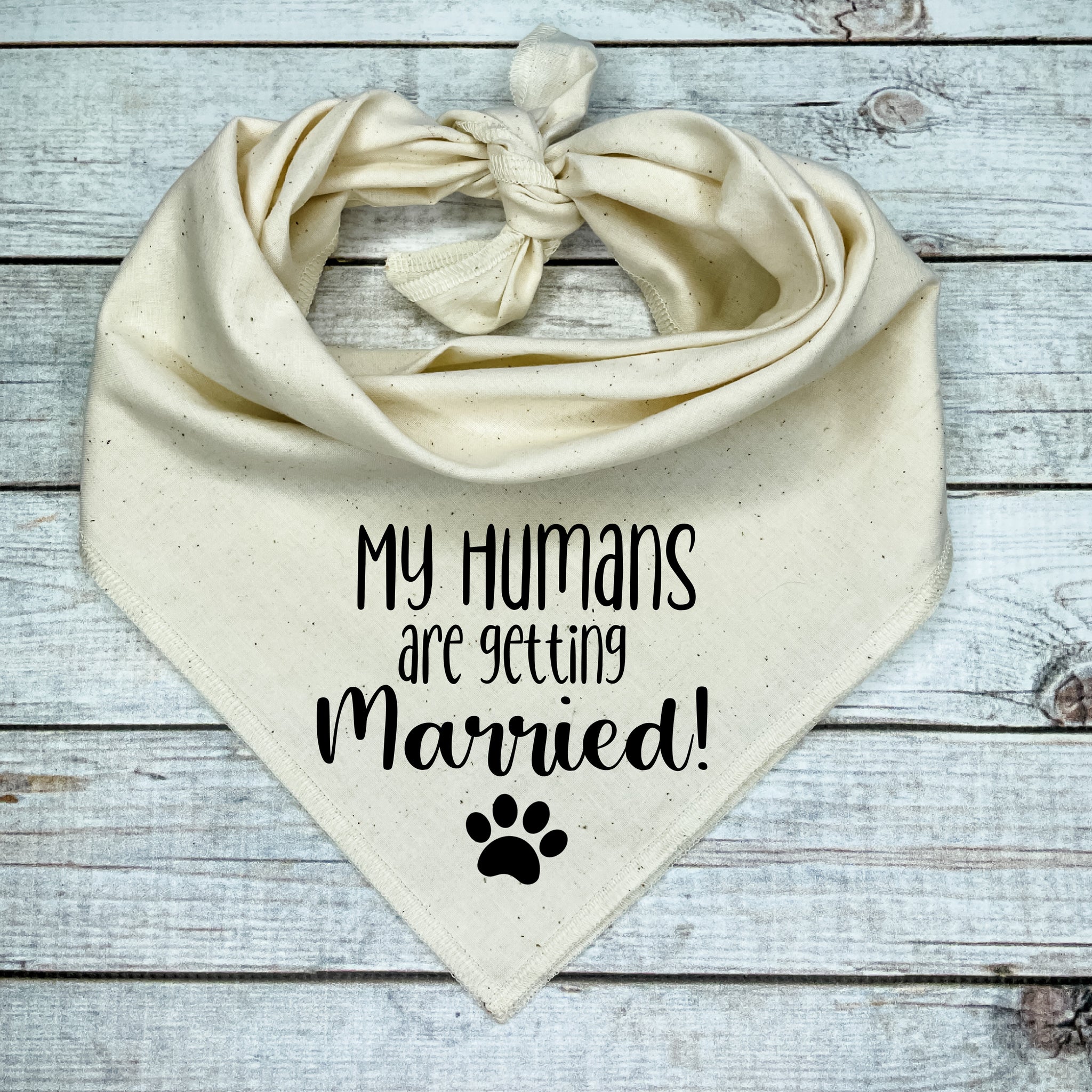 Introducing our "My Humans are Getting Married" dog bandana, a perfect accessory for your dog to wear during the wedding ceremony, the reception or even in pre-wedding photos. Crafted from high-quality materials, this bandana boasts a stylish yet fun design that showcases your dog's involvement in the wedding, while also ensuring your furry friend is comfortable and chic at all times.