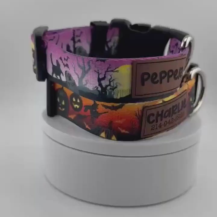 **Personalized Halloween Dog Collar – Spooktacular Style for Your Furry Friend!**
