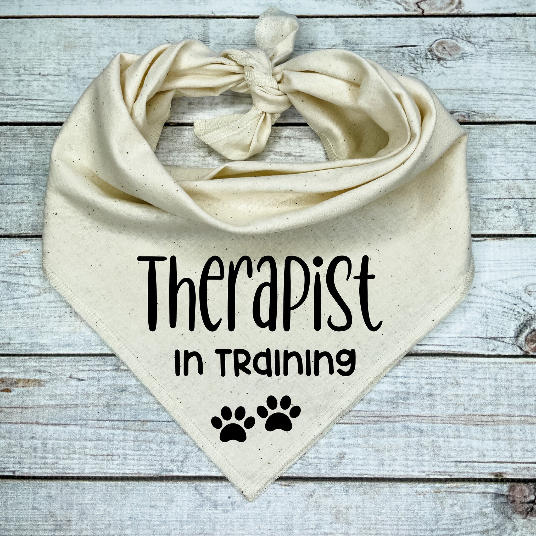 Made from premium, durable fabric, this bandana not only looks stylish but also provides optimal comfort for your beloved pup. The vibrant design features "Therapy Dog in Training" lettering that proudly communicates their noble purpose to those around.